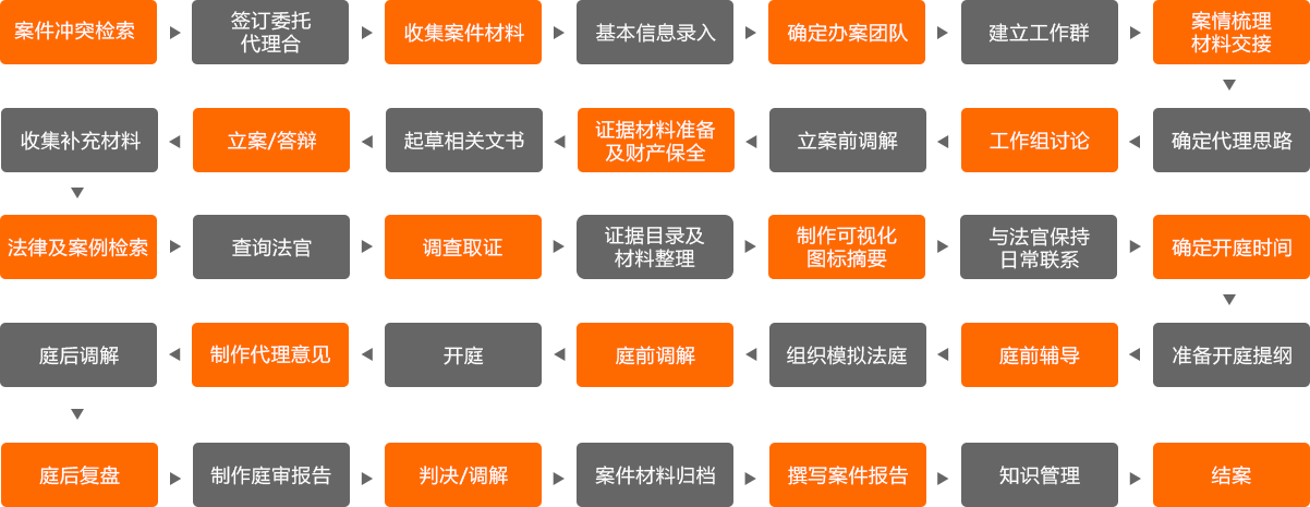 35步标准化服务流程,把控案件各个节点的进度和质量